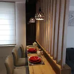 - ❓Există o bucătărie disponibilă la apartamentul pentru oaspeți?Da, apartamentul dotată cu o bucătărie complet echipată și oferă un cuptor cu microunde, un ceainic electric și ustensile de bucătărie.